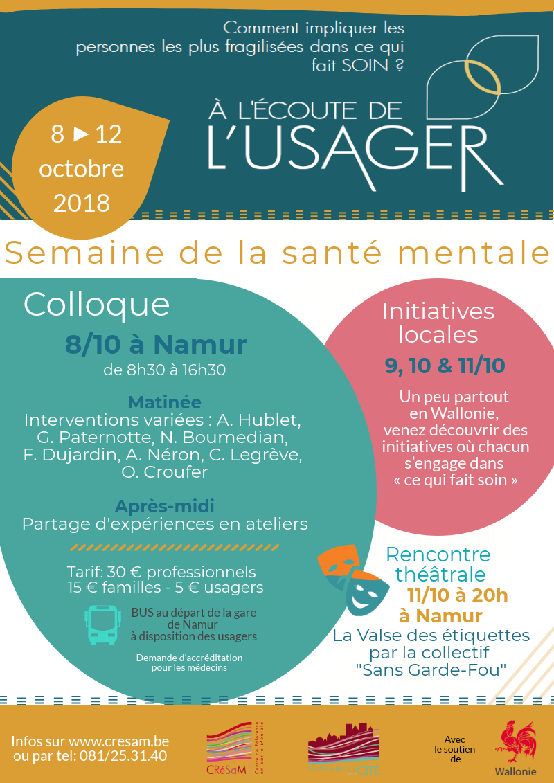 L’édition 2018 de la Semaine de la Santé Mentale, organisée à l’initiative du CReSaM, portera sur la thématique « À l’écoute de l’usager – Comment impliquer les personnes les plus fragilisées dans ce qui fait soin ? »