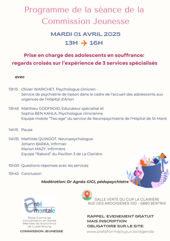 - le service de liaison psychiatrique de l’hôpital d’Arlon dans le cadre de l’accueil des adolescents aux urgences