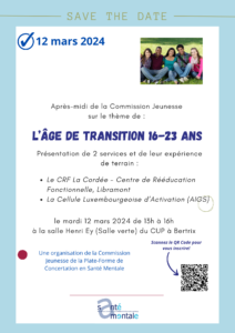 Cette 1ère séance verra se présenter 2 services travaillant avec ce public en âge de transition et leurs constats de terrain.